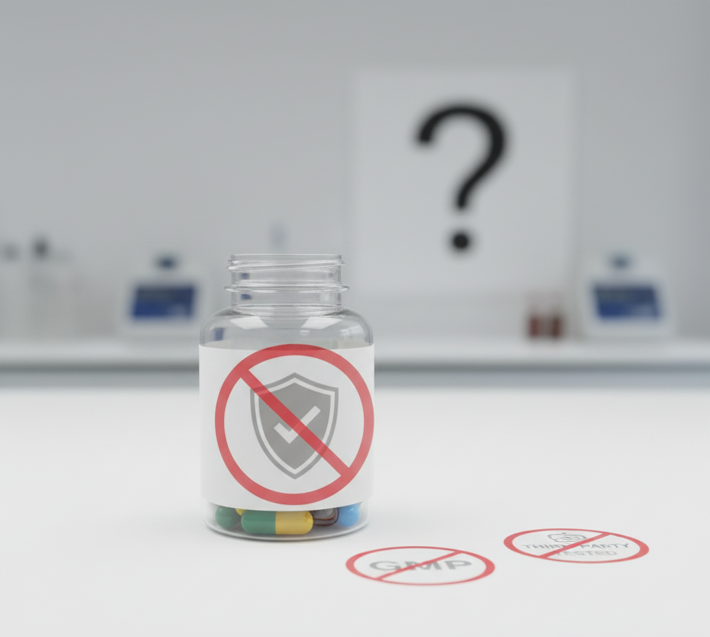Falta de Selos de QualidadeAusência de selos de boas práticas de fabricação (GMP) ou de testes por terceiros.